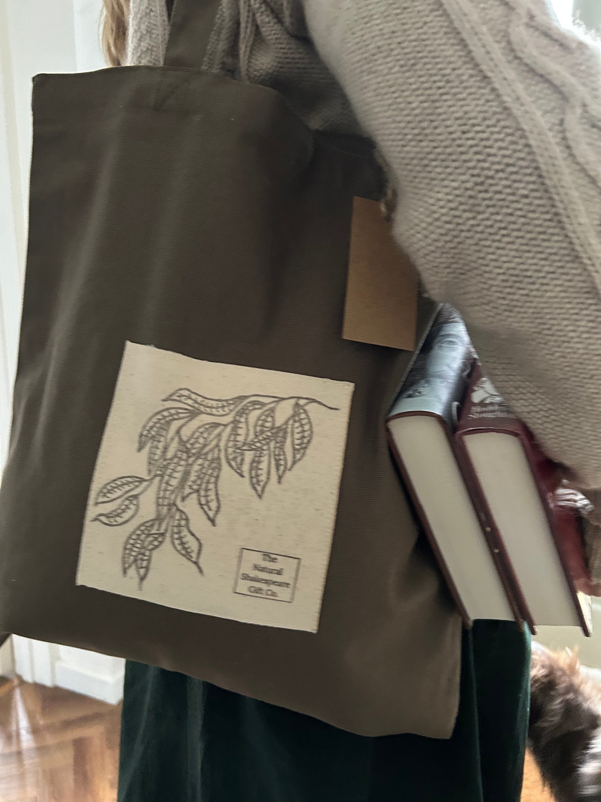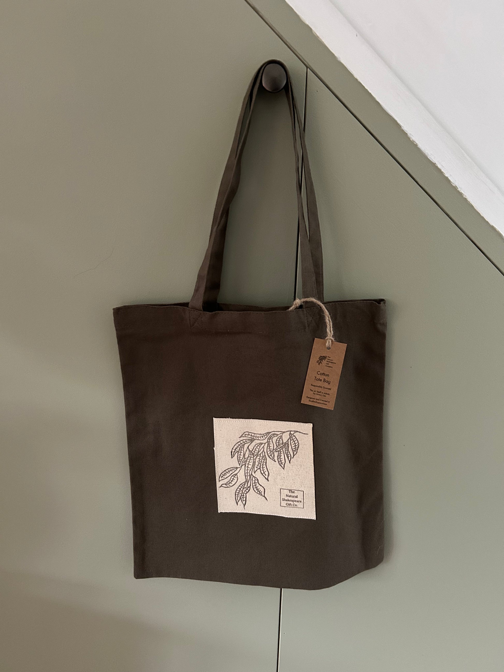 Made from responsibly sourced cotton, and featuring a sewn-on cotton canvas patch with our beautiful willow branch logo, our long-handled tote bag is the perfect thing for carrying piles of books (may we suggest you sneak some in by a certain famous playwright....), or shopping trips around the market. We have chosen the most lovely forest green colour for our bag, echoing shades of nature and evoking Shakespeare's Forest of Arden.